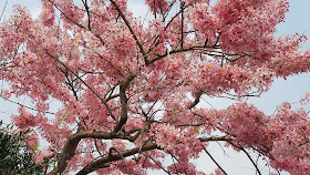 哇!運氣真好,一進美濃線道,路旁三不五時就發現成串粉嫩的花旗木正迎風招搖着,福安國小旁,廣興國小,朝元禪寺,中正湖等,賞心悅目,剛買的腳架自拍器,也藉機實測,可惜頭重腳輕,老公的手機「扑地」殼裂,慘~